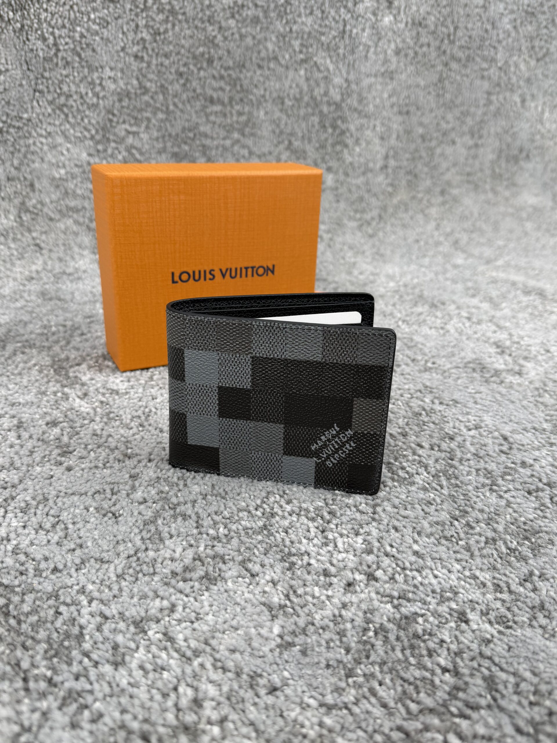 Cartera Slender confeccionada en lona Damoflage en color negro, con una reinterpretación moderna del icónico Damier Graphite mediante un diseño pixelado creado por Pharrell Williams. Su diseño delgado y elegante combina estilo contemporáneo y funcionalidad, ideal para el uso diario.